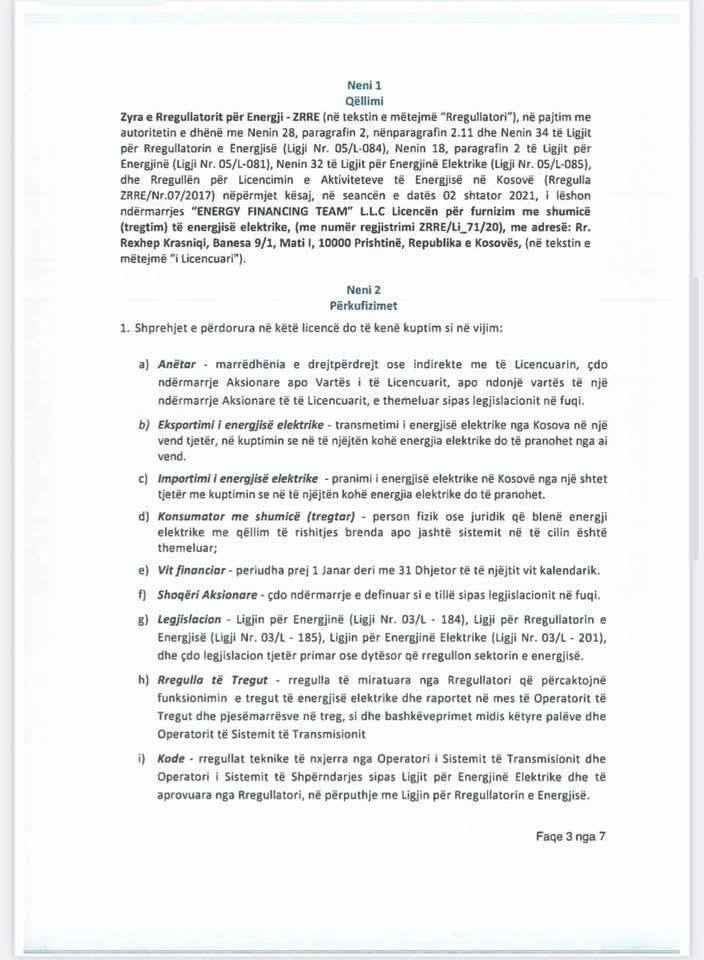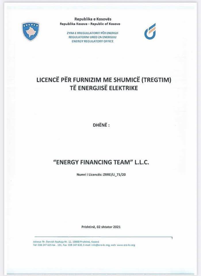 Asamblisti i pavarur në Komunën e Prishtinës, Berat Lahu, i cili dikur ishte pjesë e Lëvizjes Vetëvendosje, ka publikuar një dokument të Zyrës së Rregullatorit të Energjisë (ZRRE) që dëshmon se ky institucion kishte licencuar Energy Financing Team (EFT)-në, kompaninë e biznesmenit serb, Vuk Hamoviq.