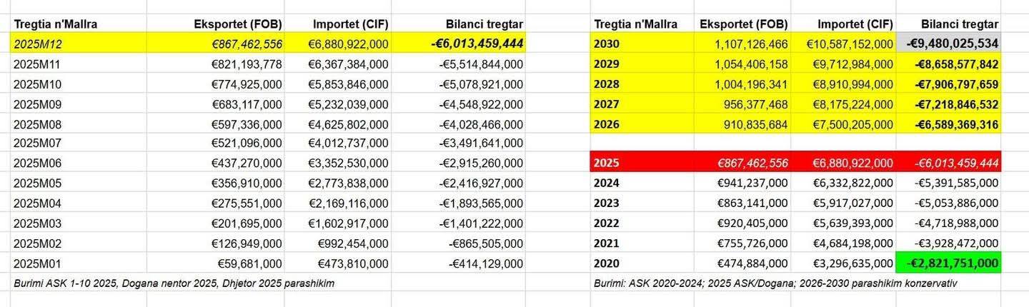 Muharremi thekson se qeveria e LVV-së ka nisur mandatin e saj me një deficit tregtar prej 2.82 miliardë euro, ndërsa në fund të mandatit ai është rritur në rreth 6 miliardë euro, gati një herë e gjysmë të buxhetit të shtetit të planifikuar. Nëse vazhdon i njëjti model i menaxhimit ekonomik, deficiti mund të arrijë në 9.48 miliardë euro deri në vitin 2030, duke çuar humbjet tregtare totale në rreth 65 miliardë euro.