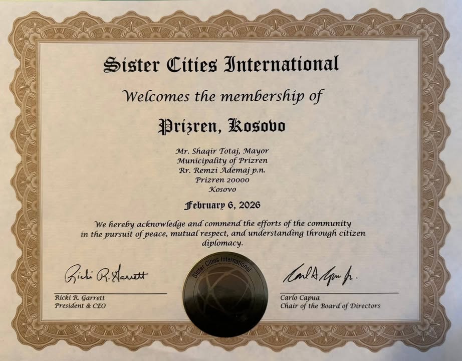 Komuna e Prizrenit anëtarësohet me të drejta të plota në Sister Cities International