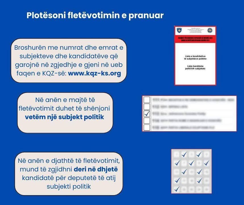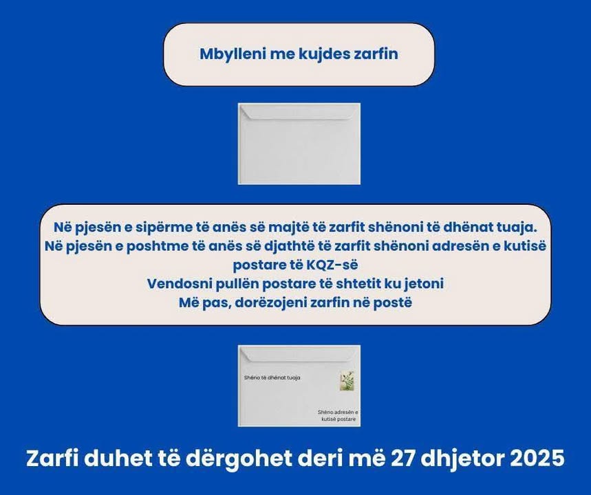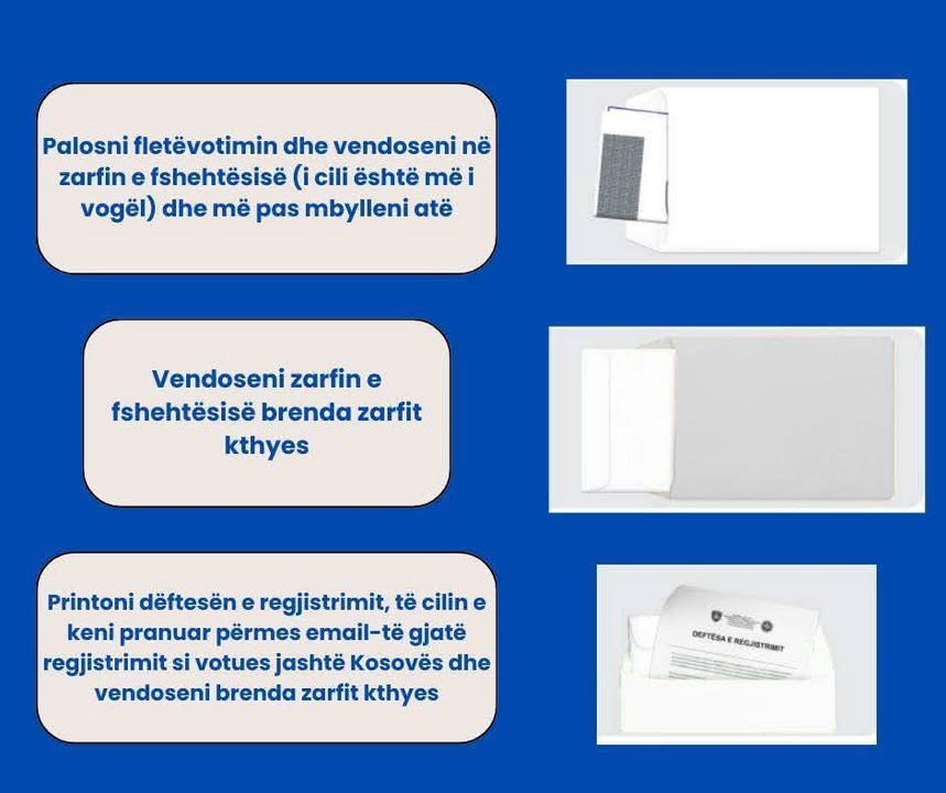 👉 Plotësoni fletëvotimin, bashkëngjitni dëftesën e regjistrimit dhe dërgoni pakon sipas udhëzimeve të përcaktuara.